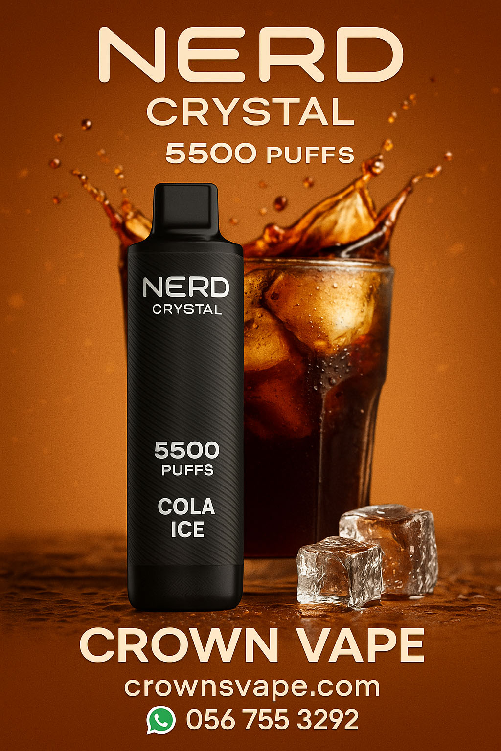 Indulge in nostalgic soda flavor with a chilling twist. The NERD Crystal 5500 Puffs Cola Ice combines fizzy cola notes with icy coolness – perfect for an all-day vape.
